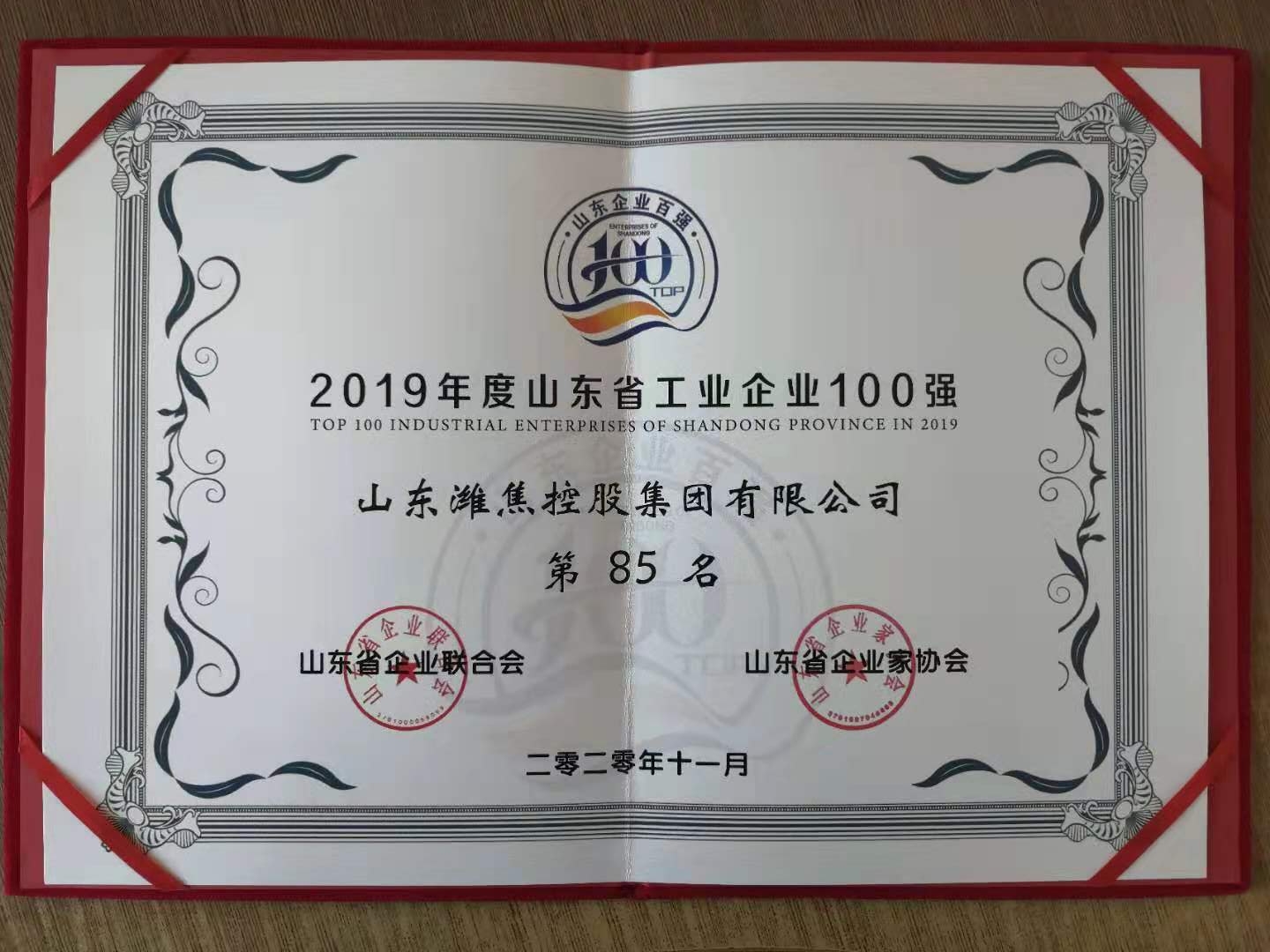 11月11日,山東省工業(yè)和信息化廳、山東省企業(yè)聯(lián)合會聯(lián)合發(fā)布了2019年山東省綜合百強和工業(yè)百強名單,山東濰焦控股集團有限公司榮登山東省工業(yè)百強企業(yè)榜單,位列第85位。