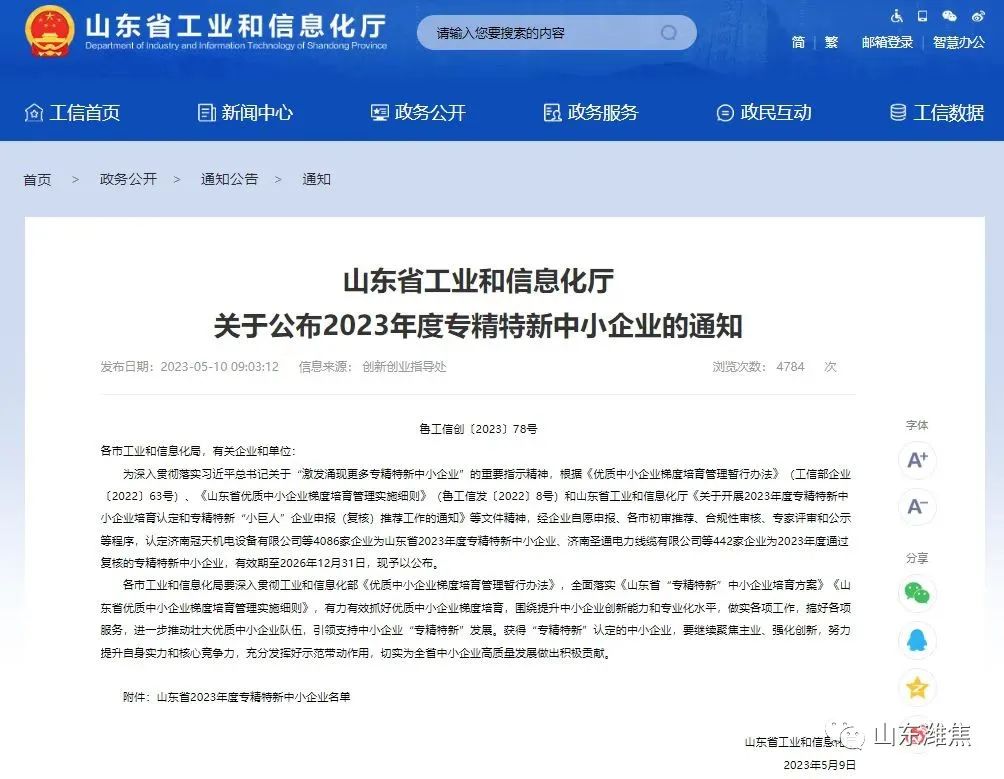 5月10日,山東省工業(yè)和信息化廳發(fā)布了《山東省2023年度專精特新中小企業(yè)名單公示》,振興新材料公司、振興炭材公司被認定為“山東省2023年度專精特新中小企業(yè)”。