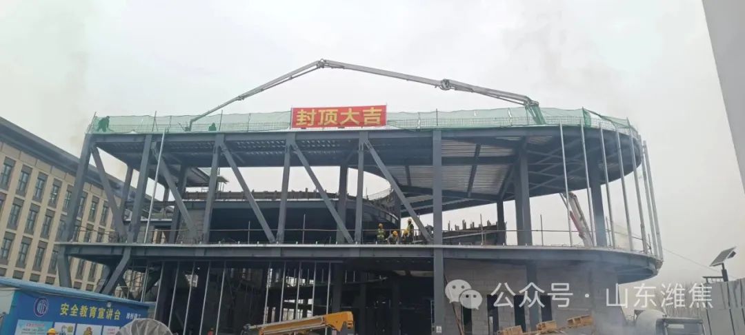 11月16日,伴隨著一車混凝土澆筑的完成,濰焦文化中 心項(xiàng)目經(jīng)過72天爭(zhēng)分奪秒日夜奮戰(zhàn),主體架構(gòu)順利封頂。