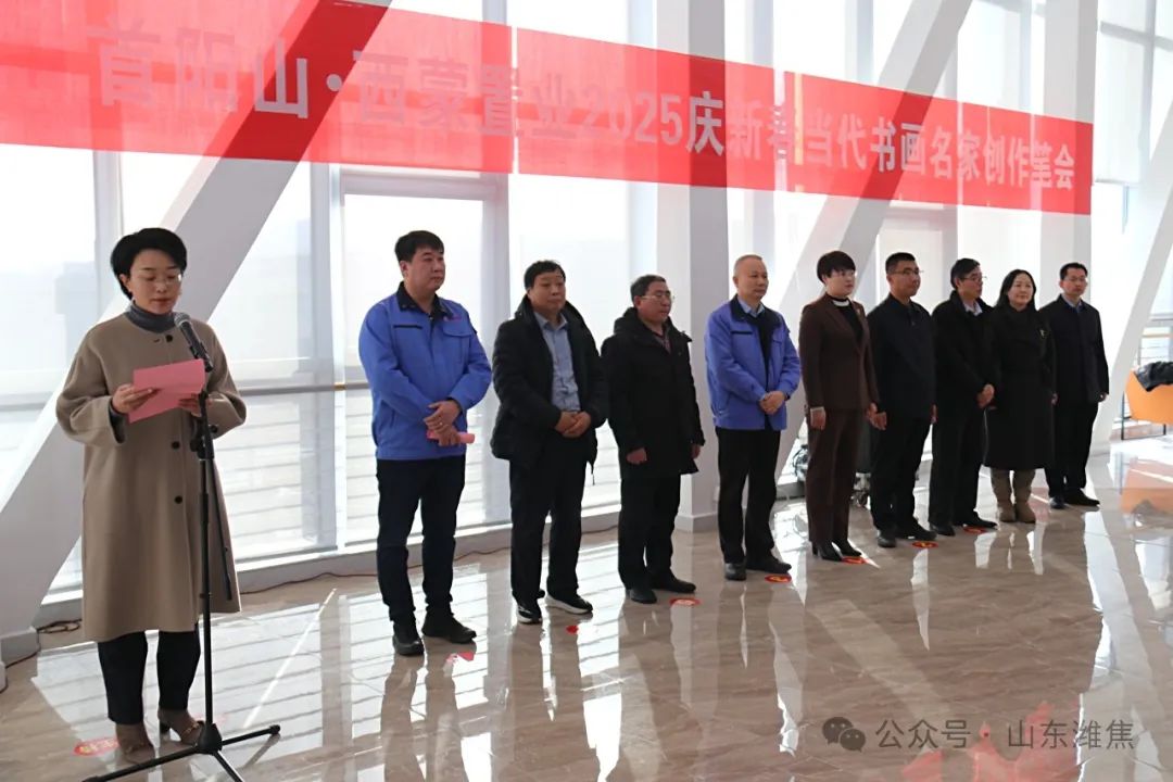 翰墨飄香書意濃,丹青煥彩慶新春。2月16日,首陽山·西蒙置業(yè)2025慶新春當(dāng)代書畫名家創(chuàng)作筆會(huì)在濰焦工業(yè)文化中 心二樓桂水·書院成功舉辦??h委常委、紀(jì)委書記劉靜及首陽山旅游度假區(qū)相關(guān)負(fù)責(zé)同志,集團(tuán)公司黨委副書記張德明、西蒙置業(yè)公司總經(jīng)理劉葉舟等出席活動(dòng),受邀的3名中國美術(shù)家協(xié)會(huì)會(huì)員和1名中國書法家協(xié)會(huì)會(huì)員現(xiàn)場藝術(shù)創(chuàng)作,為大眾帶來一場精彩的文化盛宴。